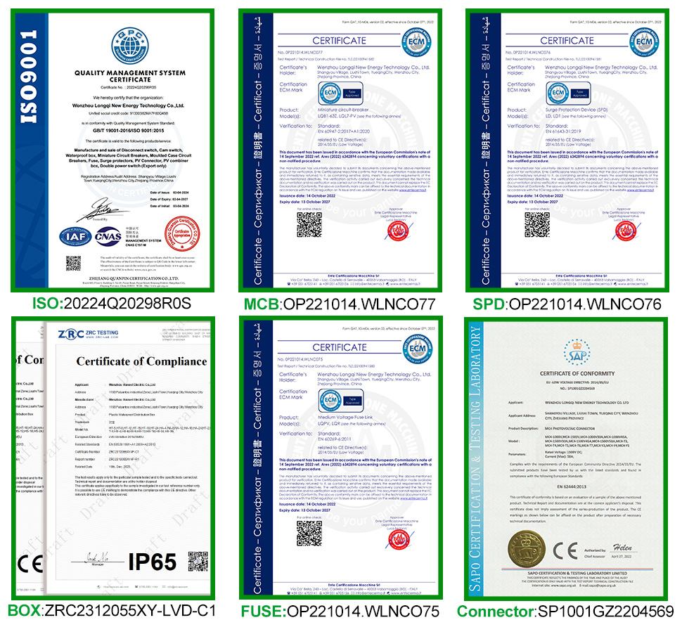 „Cnlonqcom“ HA serijos plastikinis PV kombinuotojo 6 langelis iš 2 iš DC500V/600 V/800 V yra daugiausia naudojamas PV sistemoms apsaugoti ir dažnai naudojami ne tinkle arba su tinkle sujungtose sistemose. Tokios kaip PV plokštės, RV, valtis, lauko PV, namų ūkis ir kt.