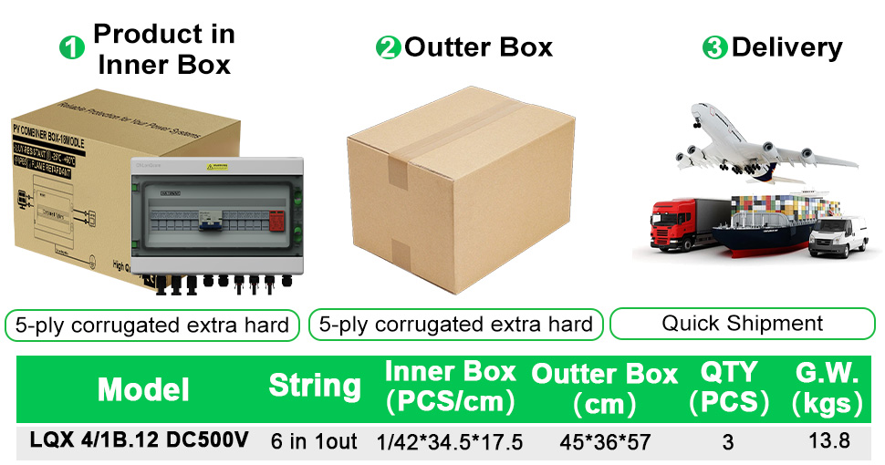 „PV Combiner“ 6 langelis iš 1 iš DC500V/600 V/800 V veiksmingai apsaugo keitiklius ir saulės baterijas nuo pažeidimų ir siunčia nuo ugnies.