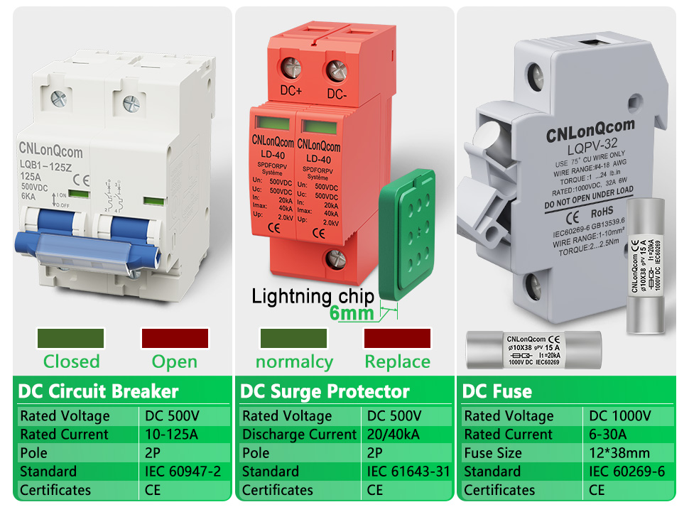 | standartas | IEC60947-2 、 IEC61643-1 、 IEC60269-6 | ||