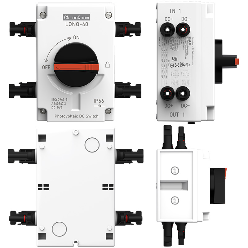 ● CNLonQcom yra gamintojas, kurio specializacija yra PV perjungiklių iki 1500V 32A, skirtų gyvenamosioms ar komercinėms fotovoltinėms sistemoms nuo 1kW iki 20kW, gamyboje. Šie jungikliai skirti montuoti tarp saulės kolektorių ir įkrovimo valdiklių, saulės kolektorių ir inverterių arba tarp pačių saulės baterijų.